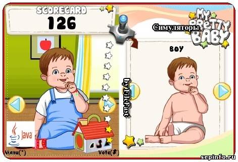 Тамагочи, симулирующий ухаживание за младенцами. Выберите девочку или мальчика и попытайтесь сделать их счастливыми. Меняйте подгузники, давайте игрушки, кормите и развлекайте их. [b]Год выпуска:[/b] 2011 [b]Жанр:[/b] Симуляторы [b]Категория:[/b] Java игры [b]Размер экрана:[/b] 128x160 176x220 240x320 [b]Разработчик:[/b] Fugumobile [b]Платформа:[/b] java [b]Формат:[/b] .jar [b]Вид устройства:[/b] для телефонов [b]Язык интерфейса:[/b] английский [b]Размер:[/b] 3,03 Mb [b]Подготовил:[/b] FileFast